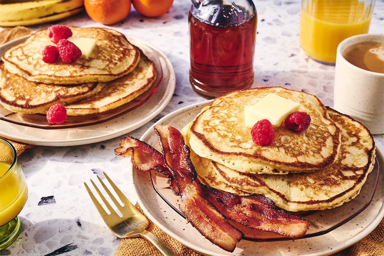 With their mild tang, sourdough pancakes are a tasty change from your usual breakfast short stack. You might worry that the sourdough flavor will be strong enough to clash with syrup or your other favorite toppings, but it's not the case: Pancakes made with sourdough starter simply taste a bit richer and more nuanced than the norm. If you're looking for a sturdier base (that can hold even more maple syrup), use our Overnight Sourdough Waffles recipe.