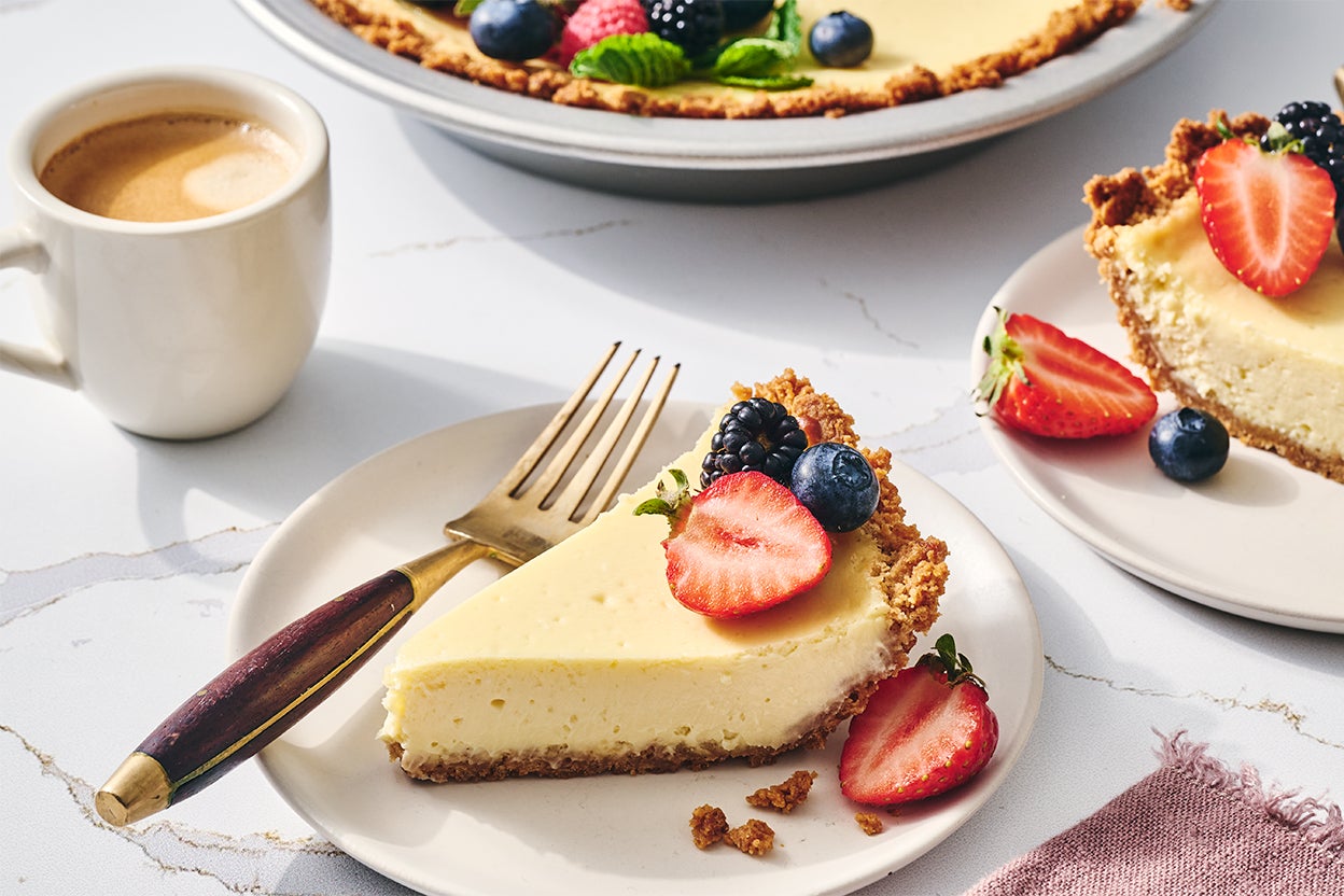 Cheesecake may have a reputation for being fussy, but this cheesecake recipe keeps things refreshingly simple. No springform pan, no water bath — just four basic ingredients for the filling: cream cheese, sugar, eggs, and vanilla. The creamy filling comes together in minutes and is poured into a press-in graham cracker crust. The cheesecake is ready to chill after a quick 30-minute bake. You'll be eating cheesecake in no time!