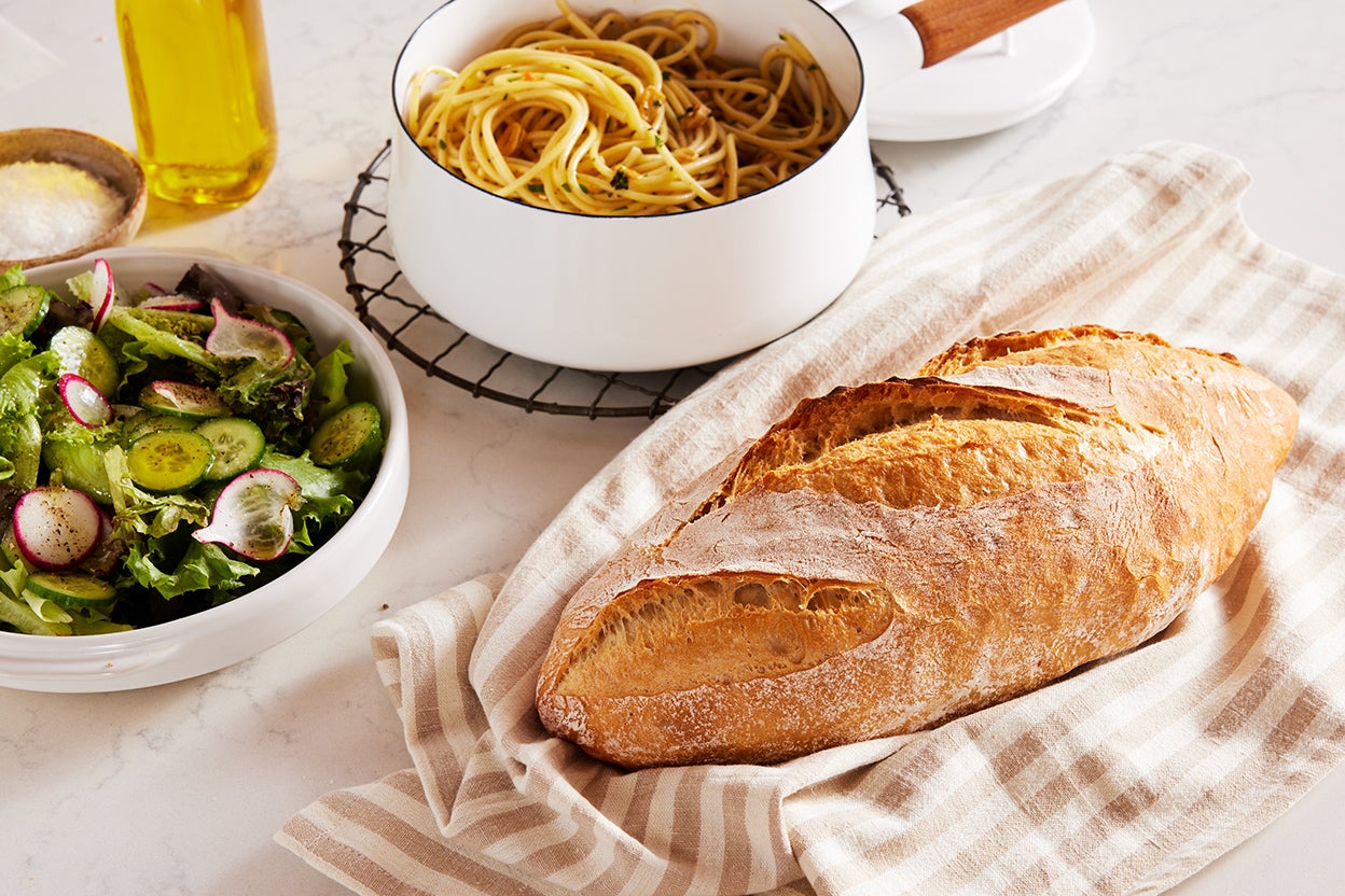 Bake the loaves for 32 to 38 minutes, until the crust is firm and medium golden brown. Let the loaves cool completely before slicing. French bread is best eaten the day it's baked. Freeze for longer storage.