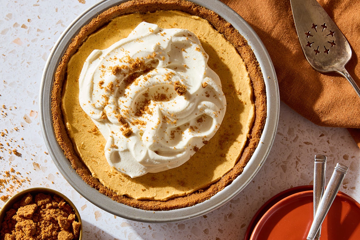 Your oven is busy enough during the holidays, so give it (and yourself!) a break with this light and airy pumpkin mousse pie. A great no-bake alternative to classic pumpkin pie, it consists of a Biscoff cookie crust, a creamy, warmly spiced pumpkin filling, and, of course, a pile of whipped cream on top. If you’d rather skip the crust and go straight for the mousse, see “tips” below for dividing the filling into individual servings worthy of any dinner party.