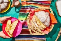 This traditional Mexican pan dulce, with its distinctive shape, is commonly made as an offering during Day of the Dead (Día de los Muertos), November 1-2. Aside from being eaten with gusto and deeply loved, Pan de Muerto often serves as an altar decoration to both honor and celebrate those who’ve died. This orange- and anise-scented version comes from Pati Jinich of PBS’ Pati’s Mexican Table.
