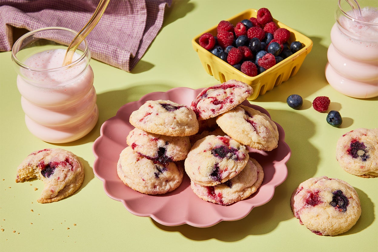 Delightfully soft and bursting with flavor, these fresh fruit cookies are an easy way to use some of your pick-your-own bounty or market haul. The lemon-flavored cookie dough is the perfect backdrop for whatever fruit you have on hand. Plus, it’s made with pantry staples. Mix and match the fruit of your choice: blueberries and blackberries, strawberries and raspberries, raspberries and black raspberries, peaches and blueberries. Try them all until you find your favorite fresh fruit cookie!
