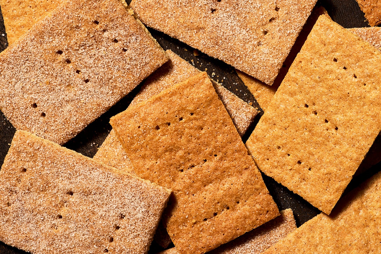 Crisp, light, and subtly sweet, these sourdough graham crackers blend the classic graham cracker flavor with the signature tang of sourdough. Enjoy them as a snack, use them for sophisticated s’mores, or layer them into an icebox cake. Top the crackers with cinnamon sugar or not; either way, they’re a must-try for graham cracker fans as well as sourdough bakers looking to use up discard.